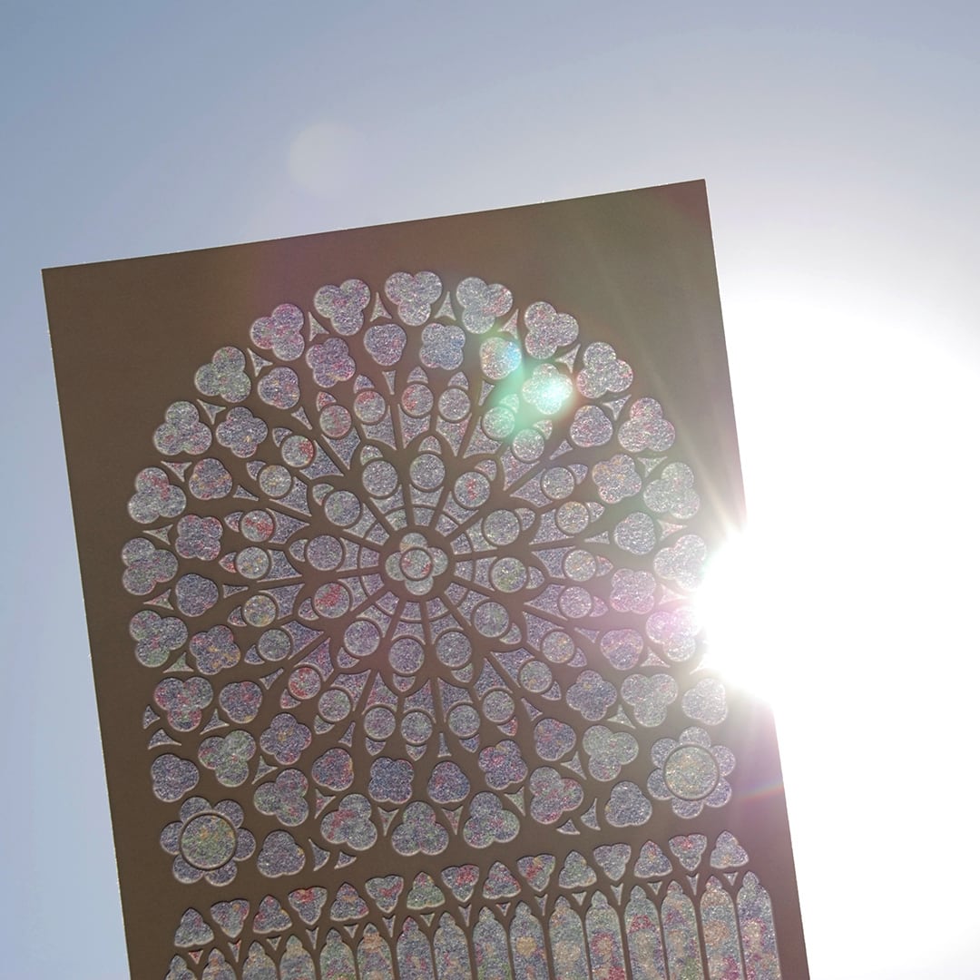 フランス・パリのノートル・ダム大聖堂の「バラ窓」をモチーフに制作したカードです。